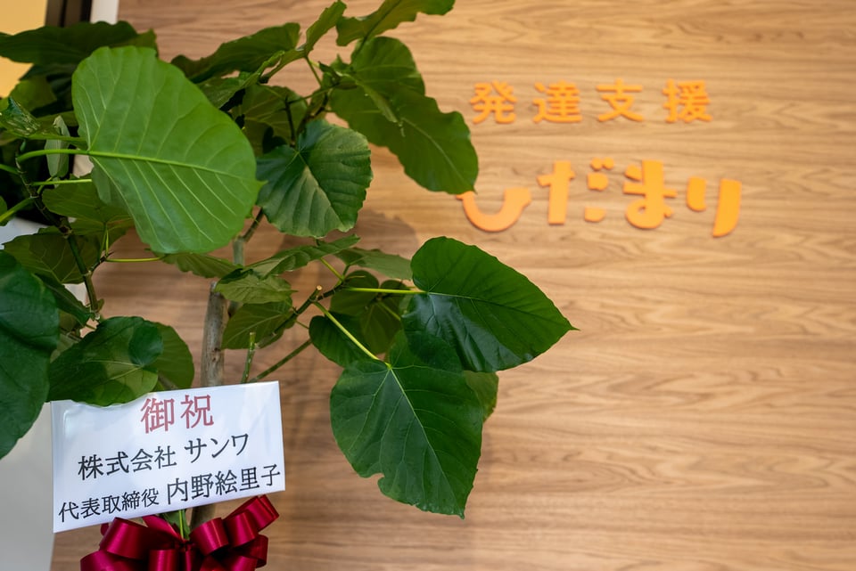 おかげさまで、関係機関の皆様や地域の皆様より、開所祝いとしてたくさんの観葉植物やお花をいただきました。