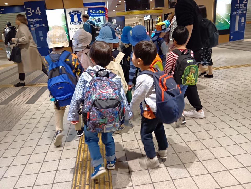 駅の構内では、お友達としっかり手をつなぎました。ひだまりが大切にする「ホンモノの環境」の中で身近なお手本と過ごすことで、子どもたちは自然と公共のルールを学び、人と関わる喜びや社会性を吸収していきます。