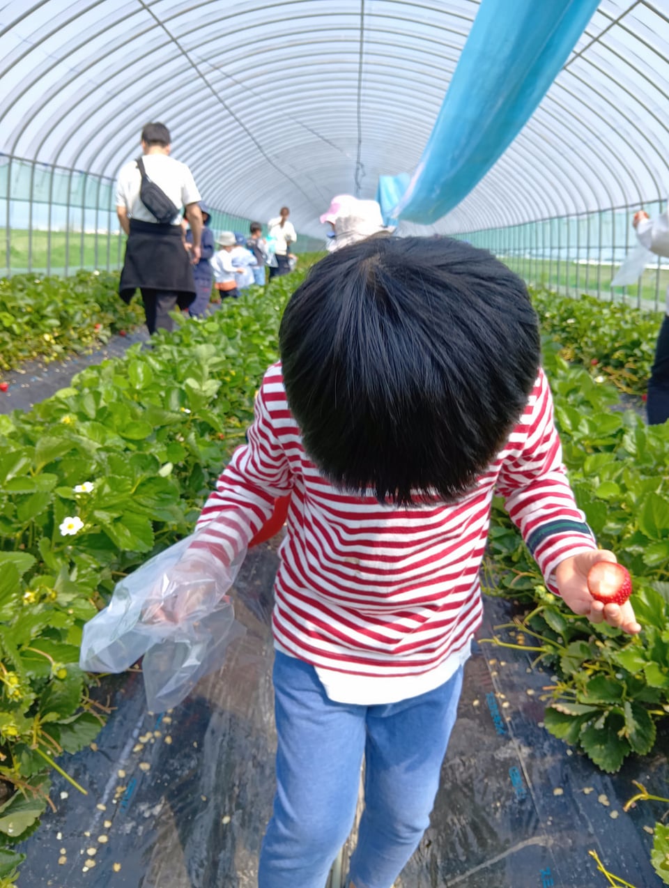 自分のリュックを背負ってたくさん歩き、太陽の下で思い切り遊び、美味しいいちごを食べる。この健全な「疲れ」と「満足感」が、お腹をすかせ、健やかな睡眠や生活習慣へと繋がっていきます。