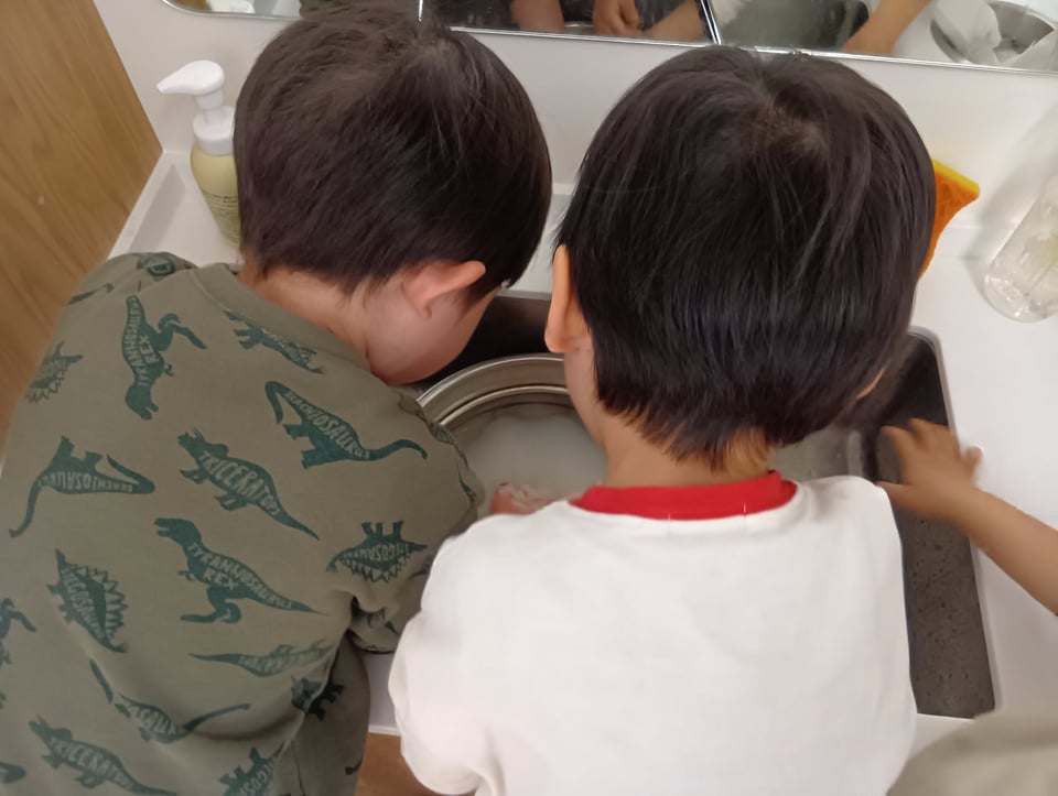【5領域:運動・感覚】:お米の固さや水の冷たさを手で感じることは、触覚の発達を促します。また、お米を握ったり研いだりする繊細な動きは、指先(微細運動)の発達を育みます。