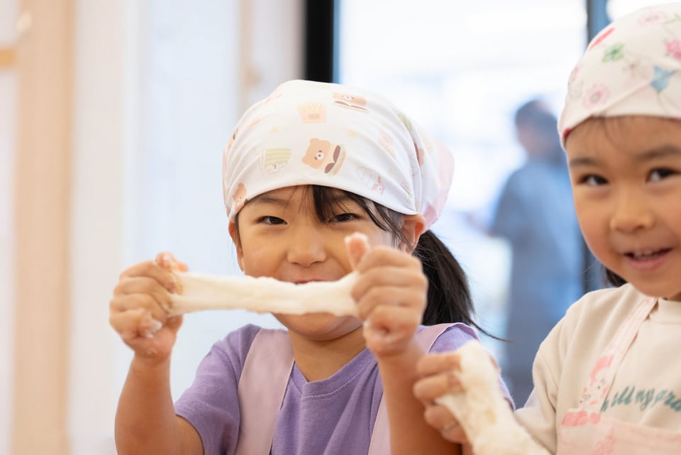 つきあがったばかりのお餅は、驚くほど柔らかく、そして温かいもの。 「うわぁ、のびる〜!」「もちもちしてる!」 自分たちの手でついたお餅の感触に、会場中がキラキラした笑顔と歓声で包まれました。 ![]()