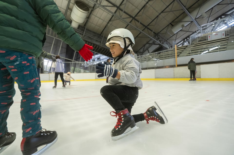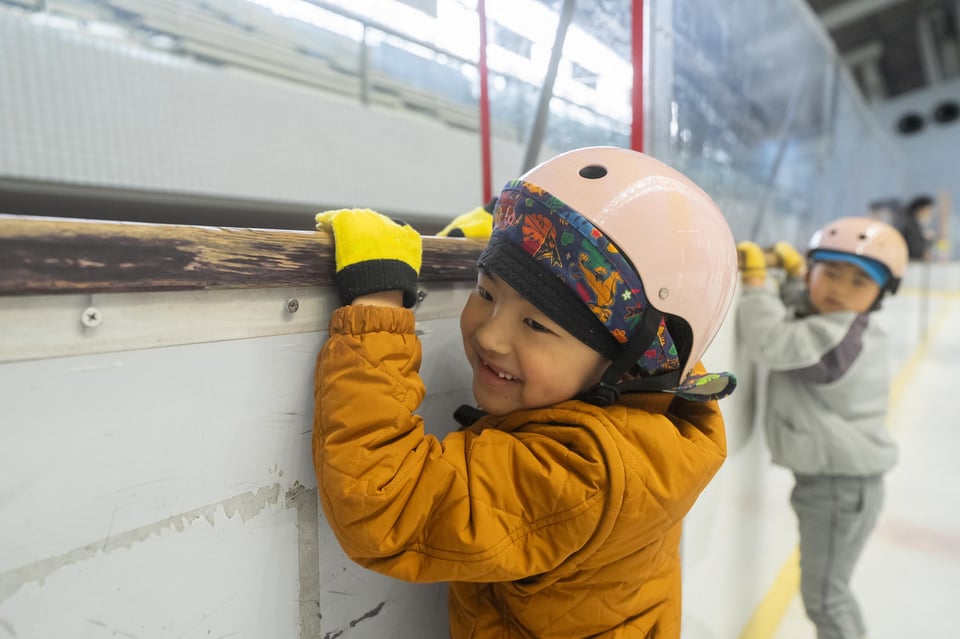 最初は慣れない氷の上に、「つるつる滑る!」「足が勝手に動く~💦」と壁とお友達状態だった子どもたち。しかし、そこはさすが年長さん。転んでお尻が冷たくなっても、「見て!立てたよ!」とすぐに笑顔の花が咲きます。