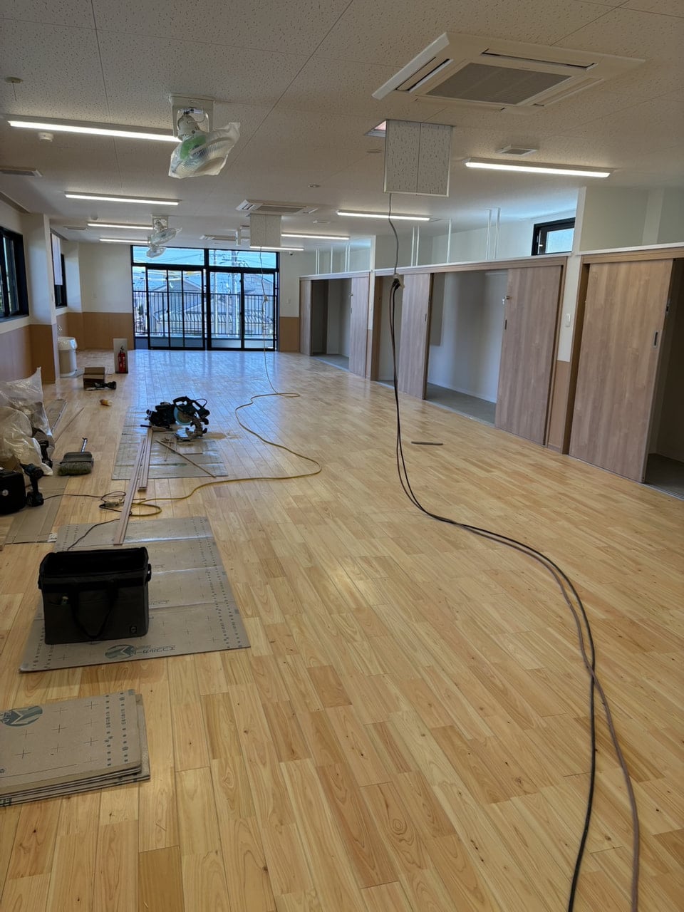 広々とした空間には美しい木目の床材が丁寧に張られており、子どもたちが元気いっぱいに駆け回る姿が今から目に浮かびます。