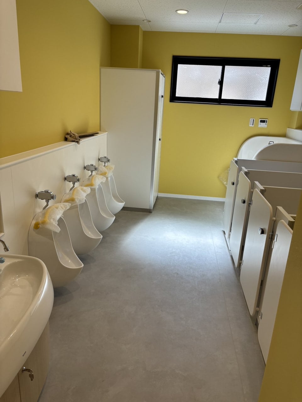小さな体に合わせた可愛らしいサイズの便器や手洗い場も並び、一人ひとりが使いやすいよう工夫されています。
