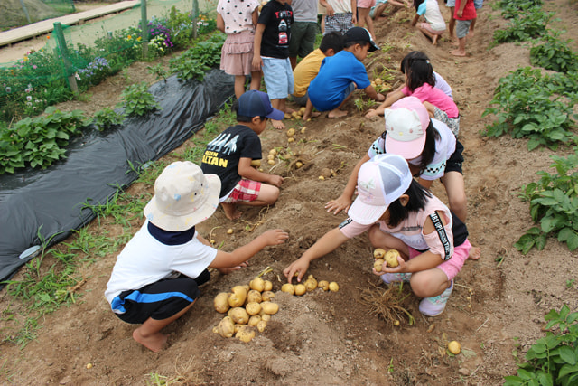 園で育てているじゃがいもの収穫をしました。